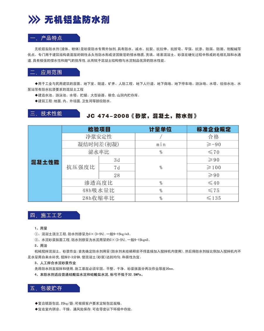 无机铝盐防水剂