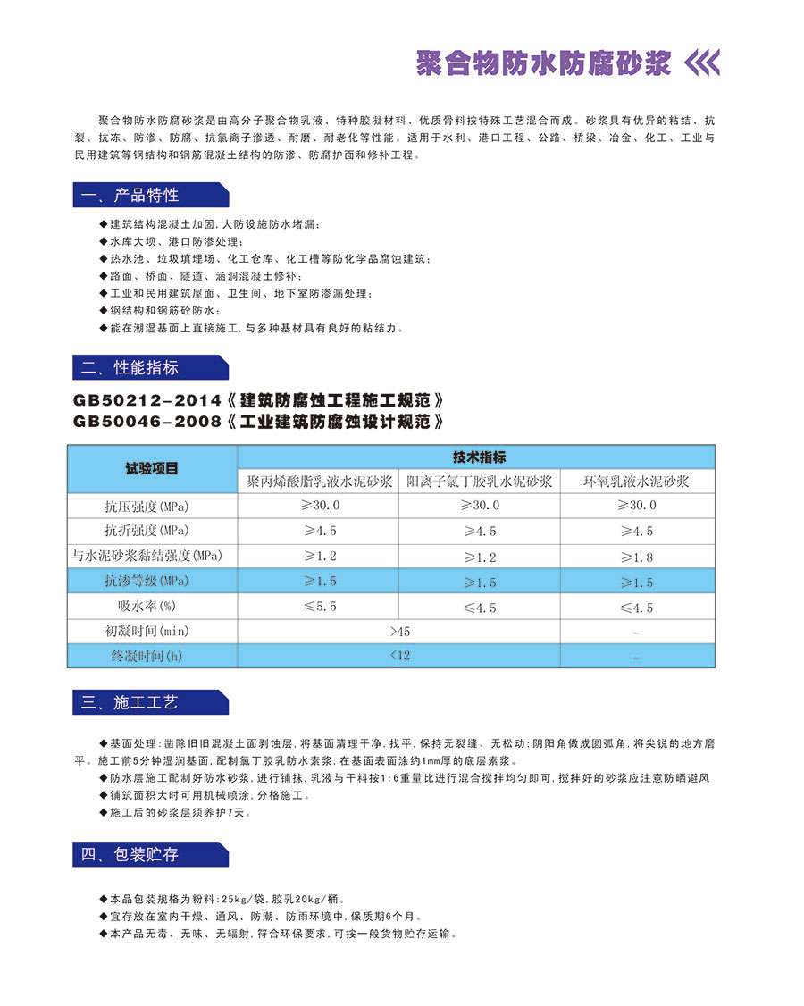 聚合物防水防腐砂浆